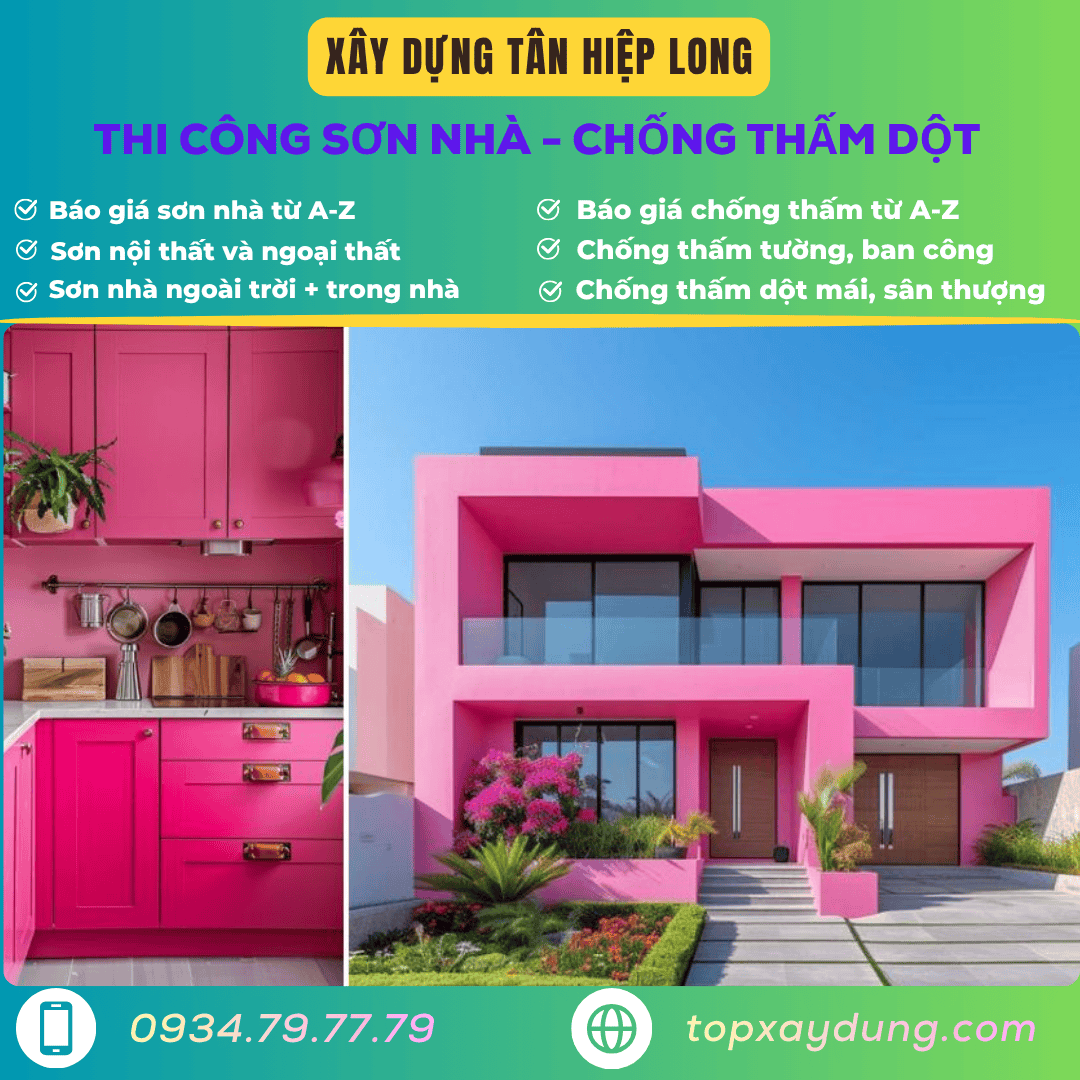 Liên hệ ngay Xây Dựng Tân Hiệp Long – Hotline/Zalo: 0934.79.77.79 – để nhận báo giá sơn nhà trọn gói từ A-Z tại Long An và dịch vụ chống thấm dột trọn gói A-Z tại Long An.