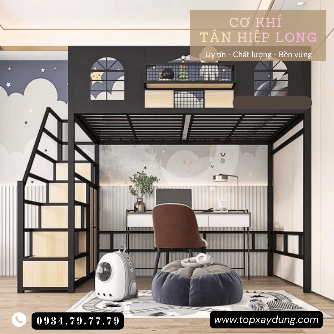 Bạn đang tìm nơi làm giường tầng bằng sắt tại Tp.HCM theo yêu cầu, vừa cao cấp, vừa giá rẻ, chắc chắn và bền bỉ? Xây Dựng Tân Hiệp Long chính là đối tác lý tưởng dành cho bạn — chuyên sản xuất và thi công giường sắt 2 tầng chất lượng cao cho cá nhân, công ty xây dựng, ký túc xá, chung cư, hoặc gia đình, tại các quận và huyện khắp Thành phố Hồ Chí Minh như Gò Vấp, Bình Thạnh, Tân Bình, Bình Tân, Quận 1, Quận 2, Củ Chi, Nhà Bè,… Liên hệ ngay Hotline/Zalo: 0934.79.77.79 để nhận báo giá và tư vấn chi tiết.