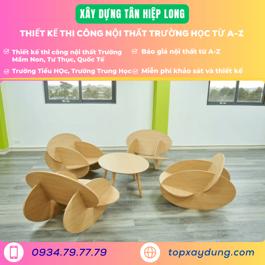 A: Dựa trên chiều cao trung bình của nhóm tuổi: 2-3 tuổi sử dụng bàn ghế thấp hơn, 4-5 tuổi dùng kích thước lớn hơn. Xây Dựng Tân Hiệp Long có bảng kích thước tiêu chuẩn theo độ tuổi để tư vấn.