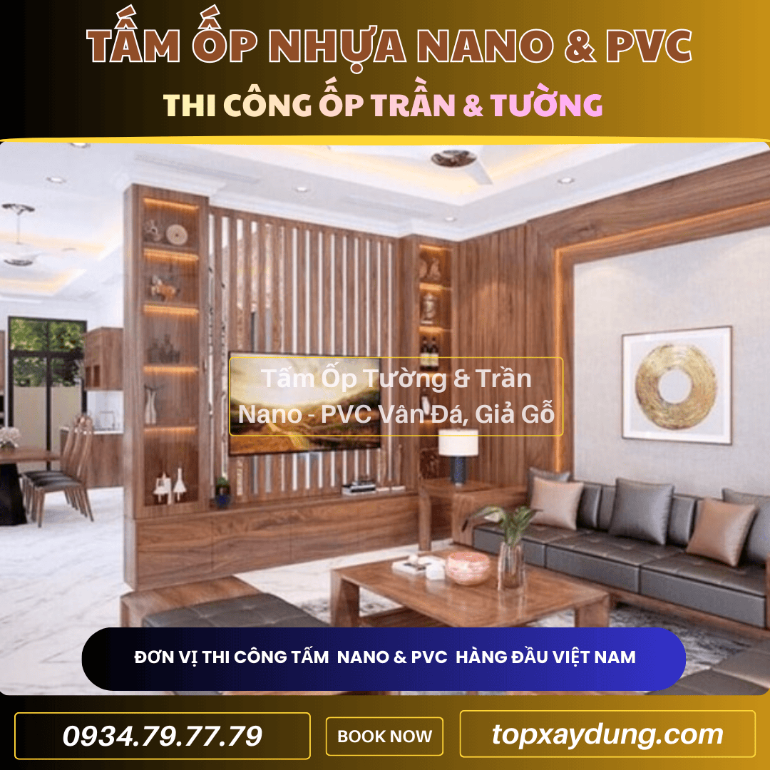 Công ty thiết kế & thi công ốp trần, tường nhựa PVC Nano Tân Bình trọn gói – giải pháp hoàn thiện không gian đẹp nhanh, gọn nhẹ, bền bỉ theo thời gian. Khảo sát tận nơi miễn phí, báo giá minh bạch, thi công đúng tiến độ, bảo hành dài hạn.