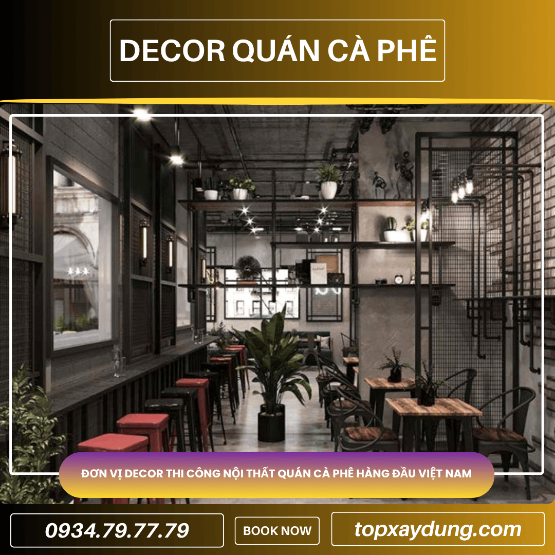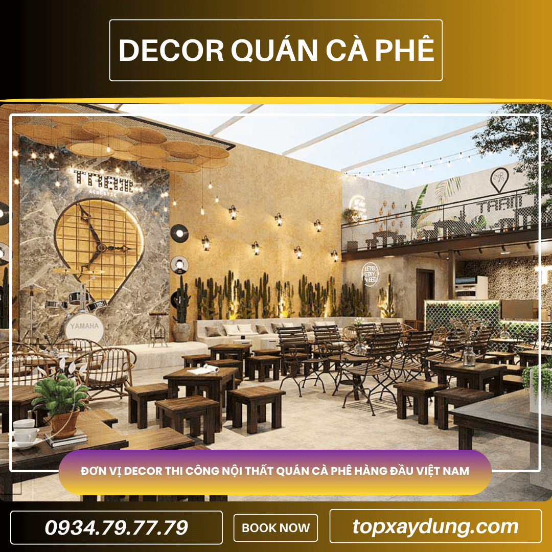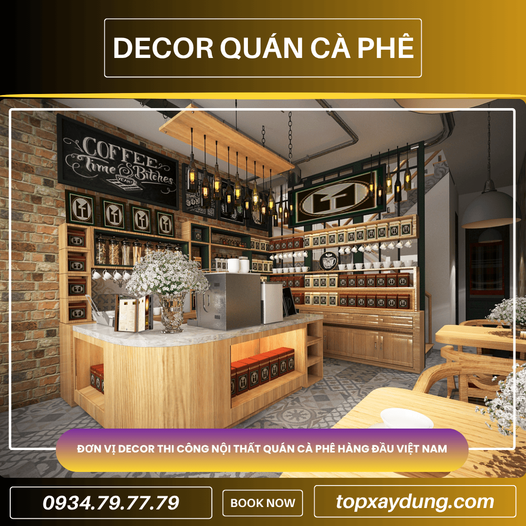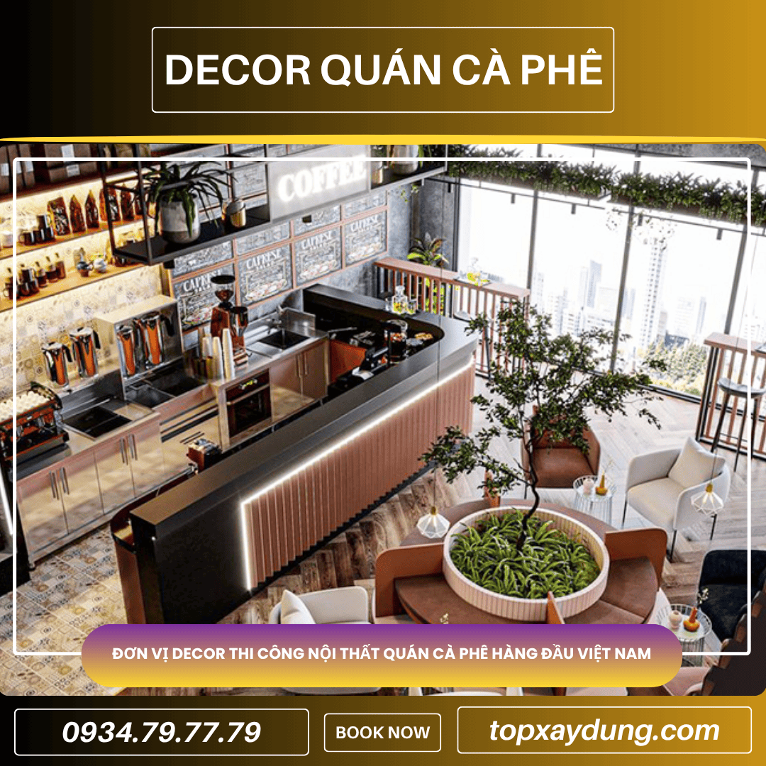 Dịch vụ decor thiết kế thi công nội thất quán cà phê độc đáo – sáng tạo, hiện đại, thu hút khách. Thi công trọn gói chuyên nghiệp. Nhận thiết kế cafe online bản vẽ 2D – 3D. Hotline 0934.79.77.79.
