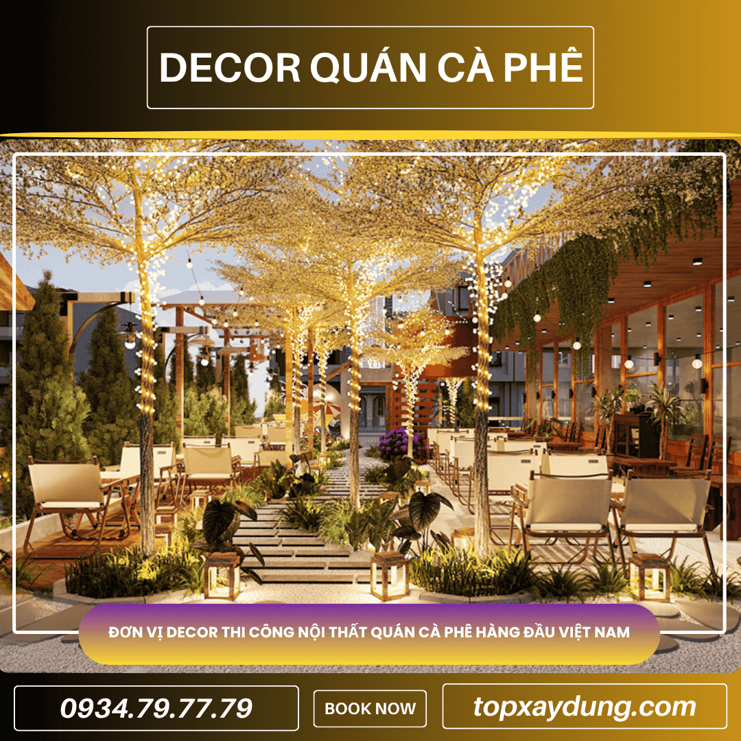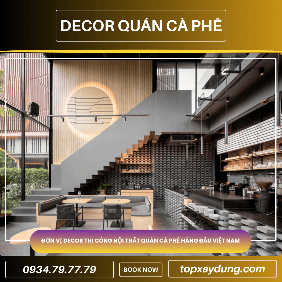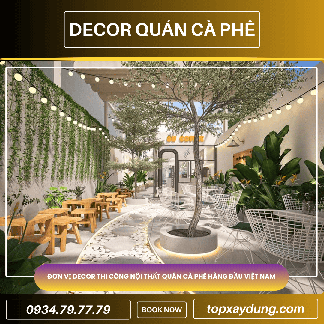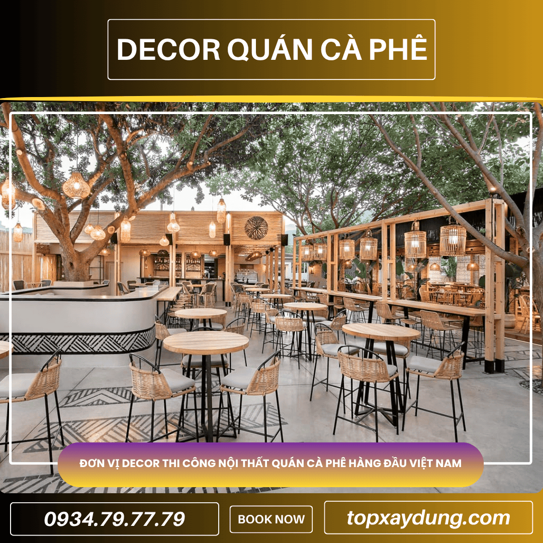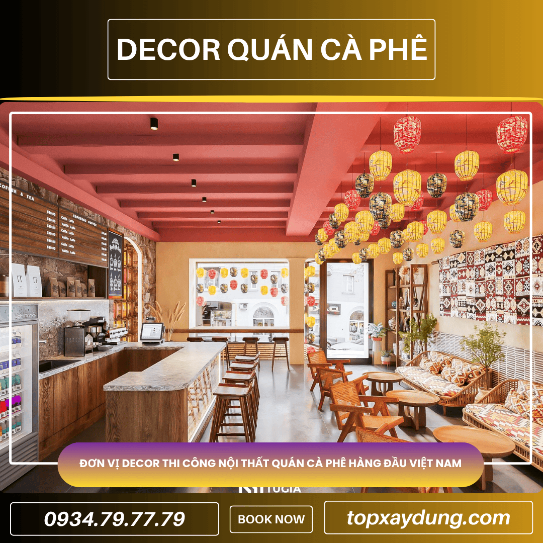 Dịch vụ decor thiết kế thi công nội thất quán cà phê độc đáo – sáng tạo, hiện đại, thu hút khách. Thi công trọn gói chuyên nghiệp. Nhận thiết kế cafe online bản vẽ 2D – 3D. Hotline 0934.79.77.79.