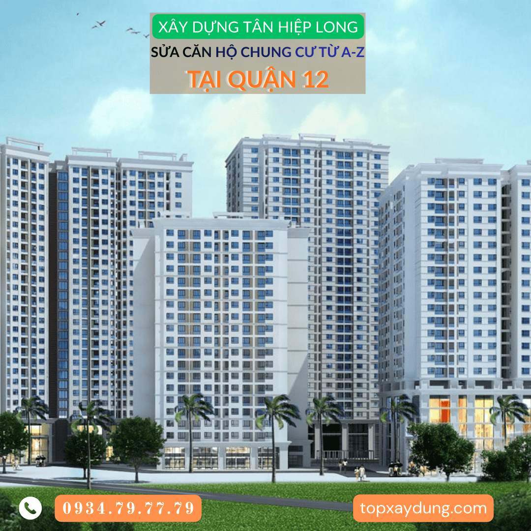 Nếu bạn đang tìm dịch vụ sửa nhà căn hộ chung cư giá rẻ, uy tín tại Quận 12, thì Xây Dựng Tân Hiệp Long chính là lựa chọn hoàn hảo. Với dịch vụ trọn gói từ A–Z, đội ngũ chuyên nghiệp, danh mục đa dạng và kinh nghiệm thi công tại rất nhiều chung cư như Picity High Park, Cheery 2 Apartment, Phú An Center, Green Mark, Zen Tower, The ParkLand, Stown Tham Lương, Topaz Home, Tecco Green Nest,… chúng tôi cam kết mang đến giải pháp sửa chữa, hoàn thiện căn hộ chất lượng, bền bỉ và tiết kiệm chi phí.