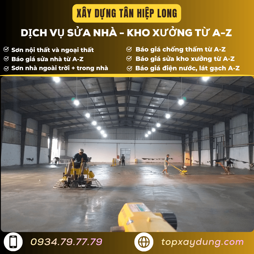 Bạn đang tìm một đơn vị uy tín, giá cả hợp lý để cải tạo hoặc sửa chữa lại nhà ở hay kho xưởng tại khu vực Thành phố Thủ Đức (TP. Thủ Đức), bao gồm các khu công nghiệp (KCN), trung tâm thương mại, khu vực đô thị và các nhà xưởng sản xuất? Vâng, bạn đã tìm đúng rồi! Công ty Xây Dựng Tân Hiệp Long xin giới thiệu Dịch Vụ Sửa Nhà/ Kho Xưởng Trọn Gói tại Thủ Đức – chuyên nhận Sửa Nhà Giá Rẻ tại Thủ Đức, Sửa Nhà Bao Nhiêu Tiền m² tại Thủ Đức, Nhận Sửa Nhà Nhỏ tại Thủ Đức, Nhận Sửa Kho Xưởng Trọn Gói Giá Rẻ Thủ Đức, và cung cấp Bảng Báo Giá Sửa Nhà Kho Xưởng tại Thủ Đức rõ ràng. Hãy cùng tìm hiểu vì sao chọn chúng tôi là lựa chọn sáng suốt, và đừng chần chừ – liên hệ ngay để được tư vấn miễn phí!