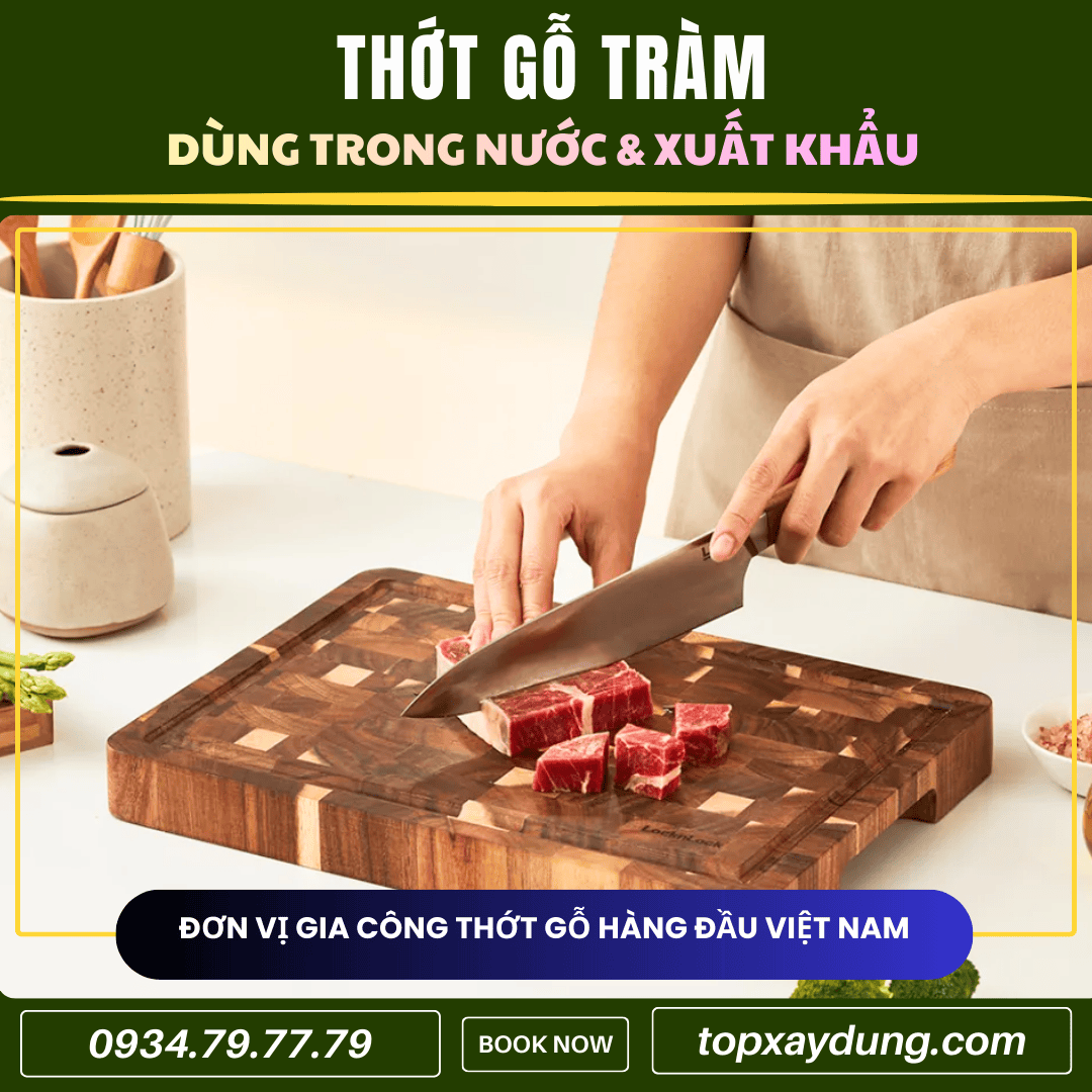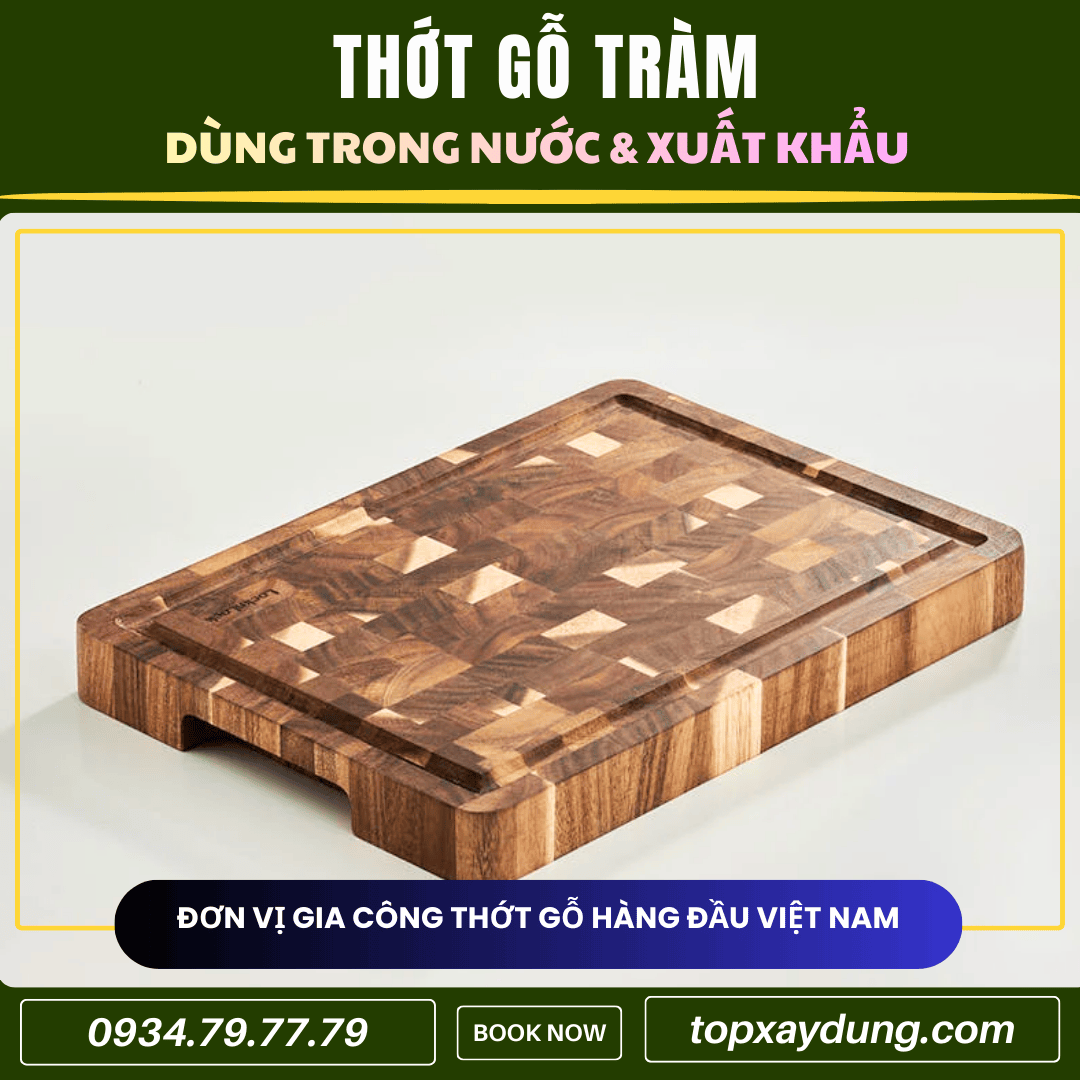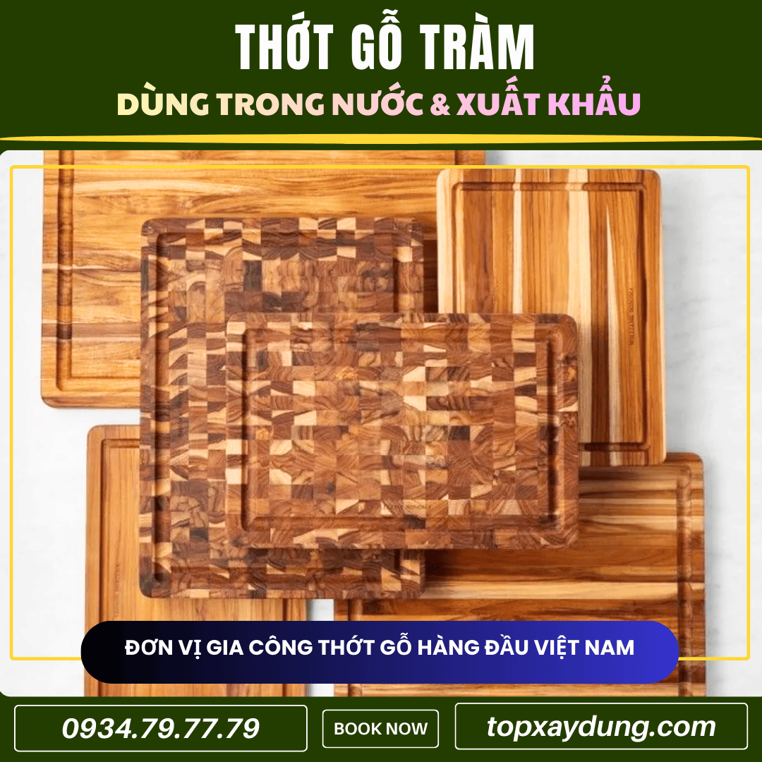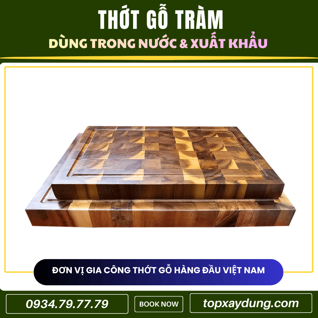 Nhờ đó, thớt gỗ Tràm trở thành lựa chọn tối ưu cho thị trường đại trà và xuất khẩu, cân bằng tốt giữa chất lượng và chi phí.