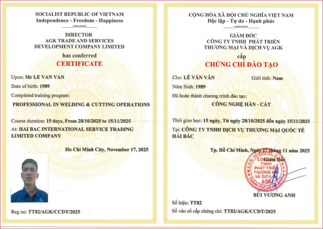 Trung tâm chúng tôi chuyên Cấp chứng chỉ nghề Thợ hàn ở Tân Bình (3G/4G/5G/6G/TIG/MIG) – đúng chuẩn, nhanh chóng, hợp pháp, doanh nghiệp chấp nhận.