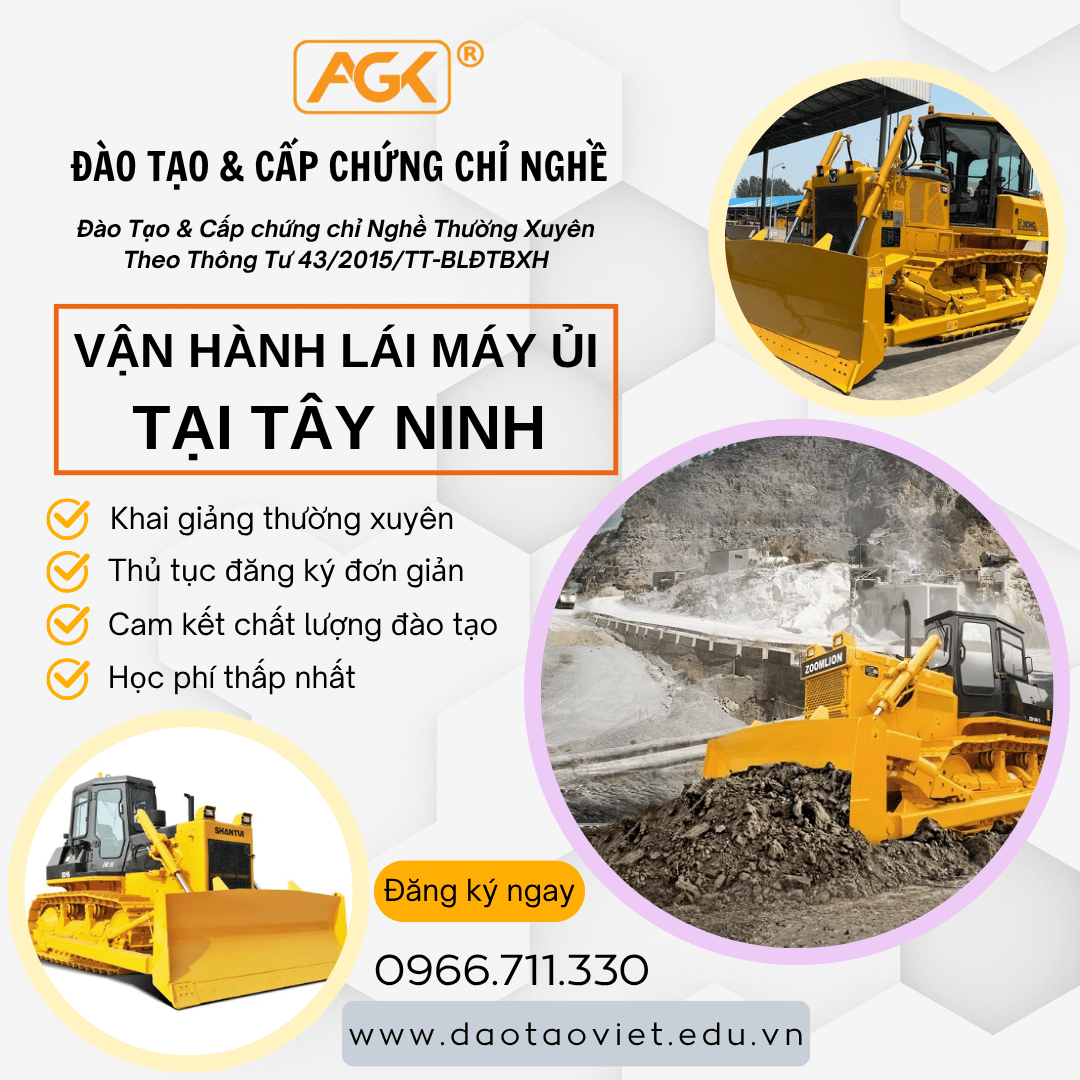 Bạn đang tìm một khóa học lái máy ủi tại Tây Ninh theo đúng chuẩn đào tạo nghề – học chắc tay nghề, có chứng chỉ hợp pháp và đi làm ngay?
