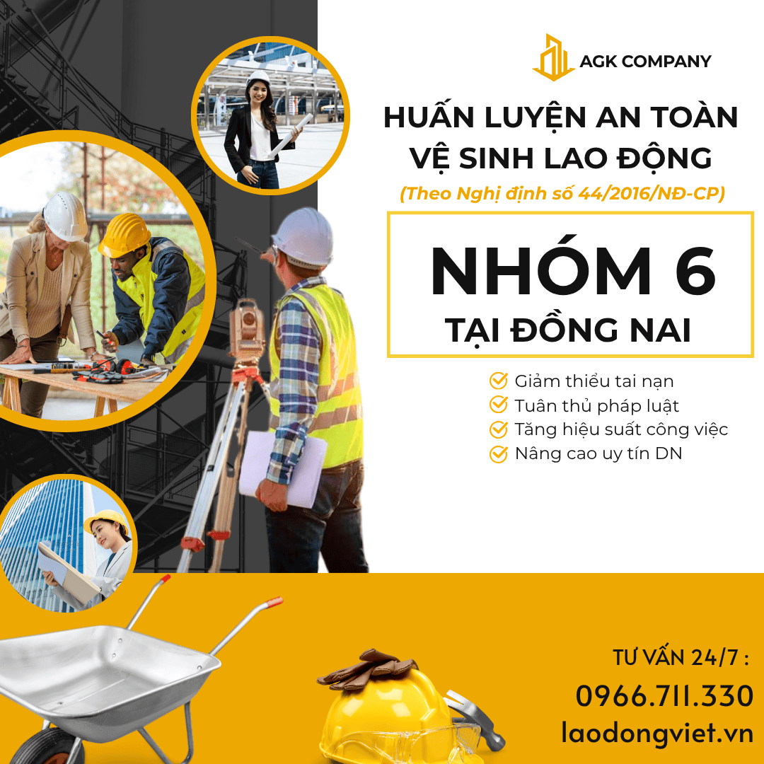 Bạn đang tìm khóa Huấn luyện ATVSLĐ Nhóm 6 ở Đồng Nai? Doanh nghiệp của bạn cần đăng ký Huấn luyện an toàn vệ sinh lao động Nhóm 6 ở Đồng Nai cho đội ngũ an toàn viên nội bộ? Đây là thông tin thiết yếu giúp bạn tuân thủ Nghị định 44/2016/NĐ-CP, giảm thiểu rủi ro lao động và xây dựng môi trường làm việc an toàn.
