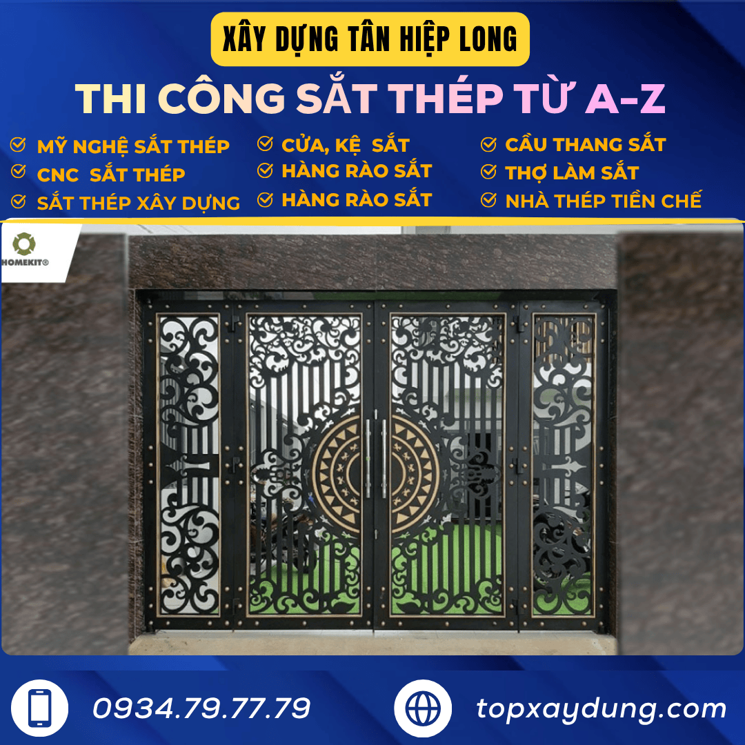 Nhà ở dân dụng hiện đại: Ưu tiên cửa sắt nghệ thuật, hàng rào CNC tinh tế, mái hiên khung sắt nhẹ nhưng bền.