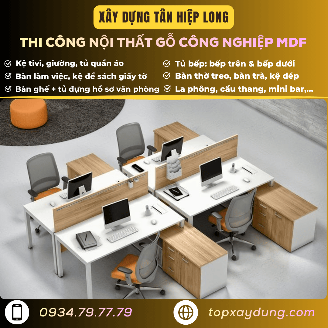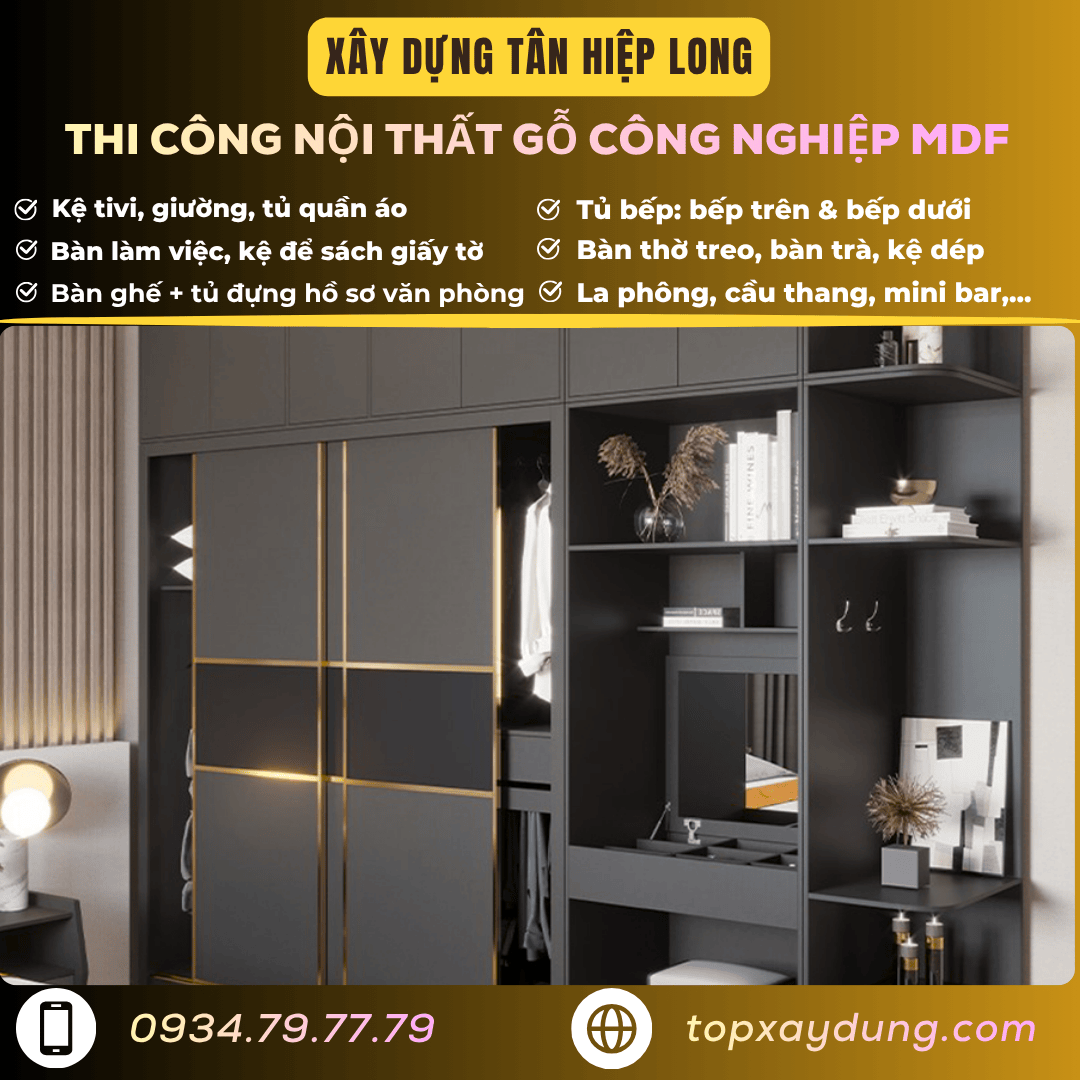 Nếu bạn đang tìm một giải pháp thi công nội thất gỗ công nghiệp – MDF giá xưởng tại Củ Chi, đừng chần chờ. Đừng để ngân sách vượt kiểm soát, đừng để tiến độ kéo dài. Hãy liên hệ ngay với Xây Dựng Tân Hiệp Long – hotline/Zalo: 0934.79.77.79 để được tư vấn miễn phí, khảo sát ngay tại công trình và nhận báo giá nhanh.