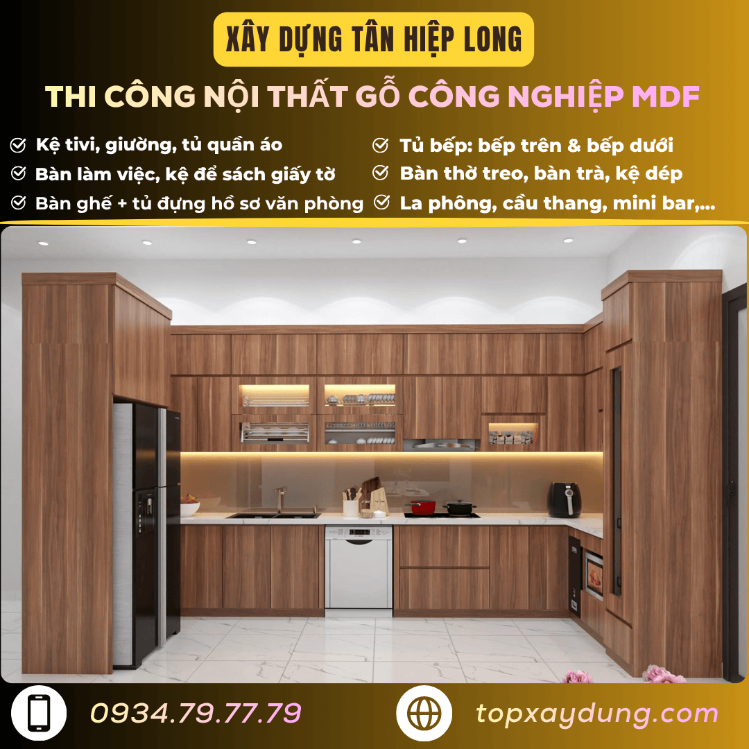 Nếu bạn đang tìm đơn vị thi công nội thất gỗ công nghiệp – MDF giá xưởng tại Q.7-HCM, hãy liên hệ ngay Xây Dựng Tân Hiệp Long để nhận báo giá ưu đãi trong tháng và được tư vấn miễn phí tại nhà!
