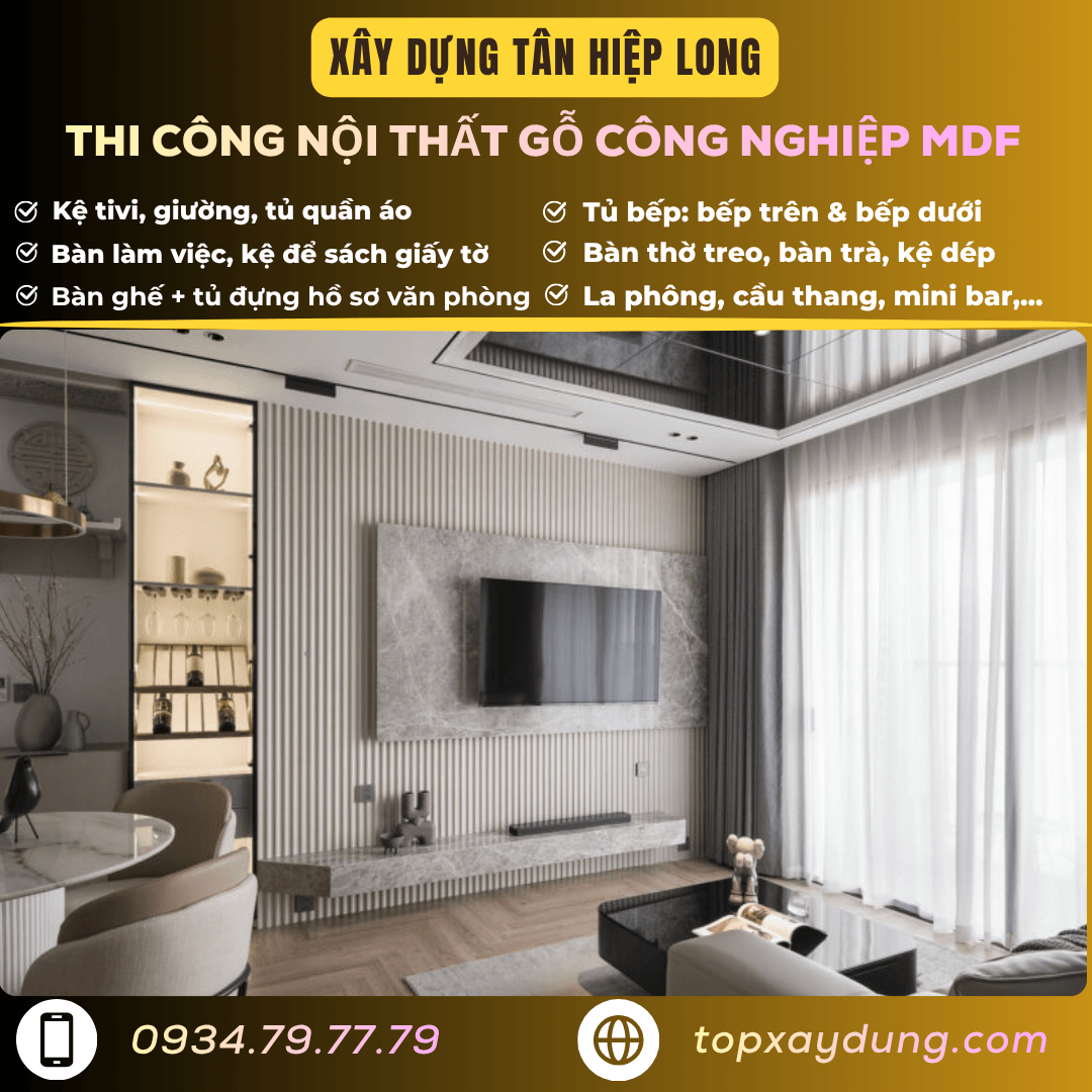 Xây Dựng Tân Hiệp Long – Thi công nội thất gỗ công nghiệp MDF giá xưởng tại Thủ Đức – Liên hệ ngay: