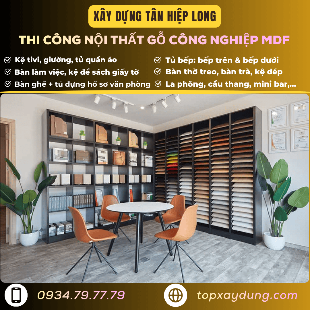 Nếu bạn đang tìm một đơn vị thi công nội thất gỗ công nghiệp cho nhà ở hoặc văn phòng tại Đắk Lắk, muốn hợp tác lâu dài với giá tốt và dịch vụ chuyên nghiệp – thì Xây Dựng Tân Hiệp Long chính là lựa chọn sáng suốt. Với gỗ MDF – vật liệu hiện đại, ổn định, đẹp, tiết kiệm – bạn sẽ sở hữu không gian nội thất hiện đại, đồng bộ và bền vững.