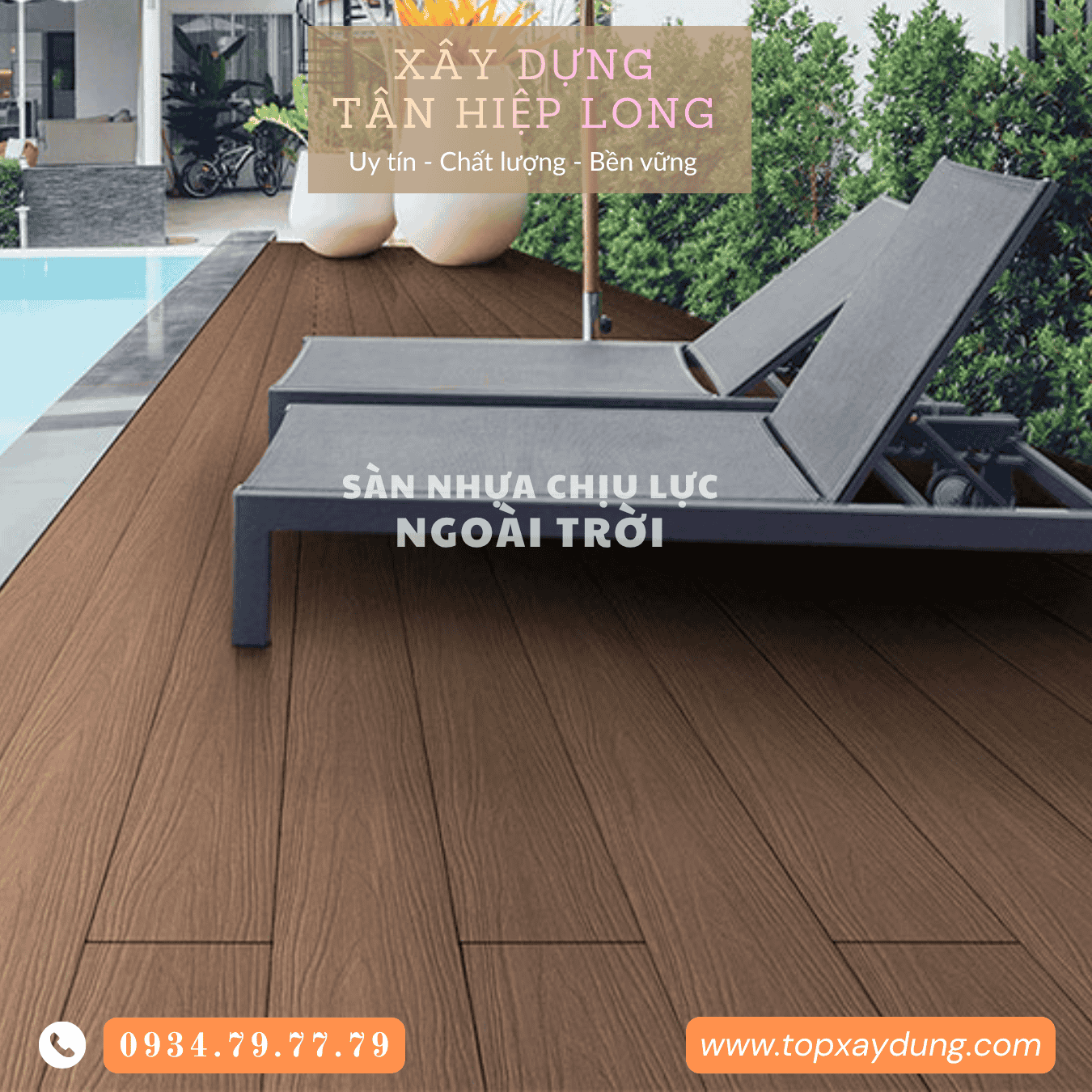 • Sàn nhựa chịu lực ngoài trời Cà Mau bằng tấm PVC là giải pháp cực kỳ bền bỉ: không thấm nước, không mục, không mối mọt, chịu được tia UV nếu chọn loại phù hợp.