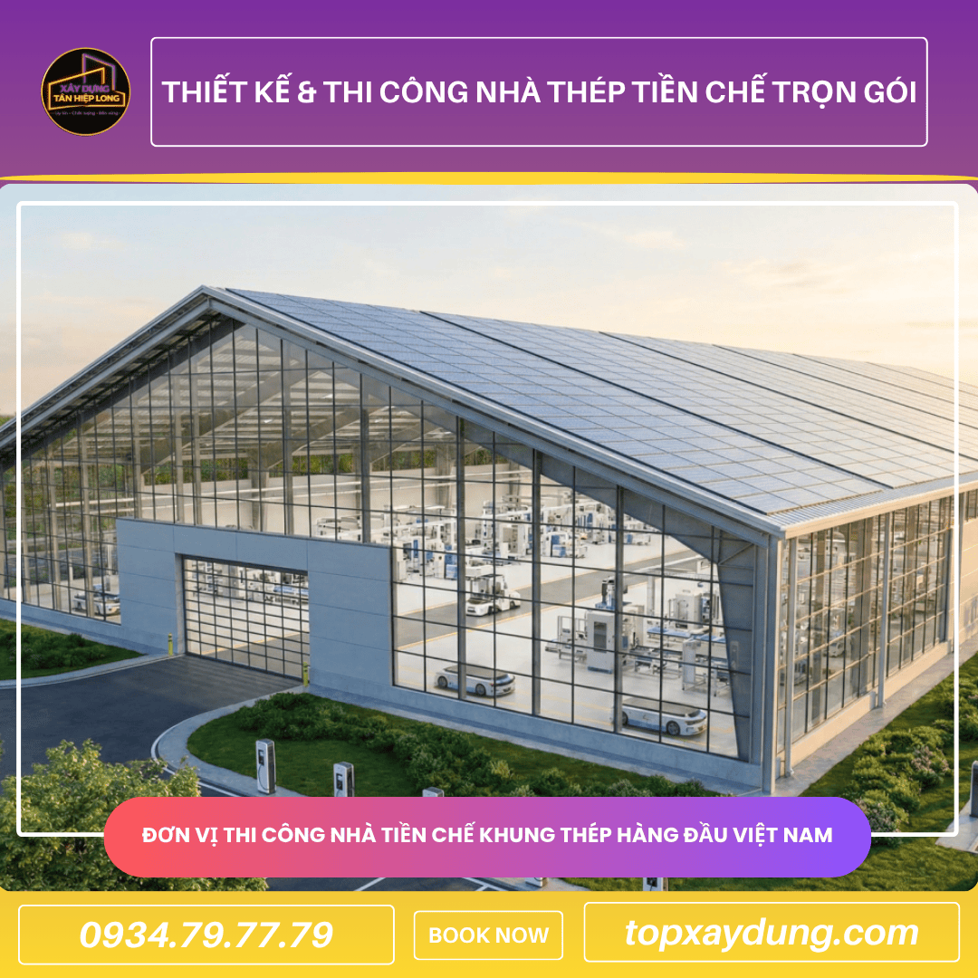 Thi công nhà thép tiền chế trọn gói giá rẻ, thiết kế chuyên nghiệp, thi công nhanh toàn quốc. Báo giá minh bạch – tiết kiệm chi phí. Hotline/Zalo: 0934.79.77.79 - 0966.711.330. Hoặc gửi email yêu cầu: [email protected] - Xem thêm các dự án khác của Xây Dựng Tân Hiệp Long tại: https://topxaydung.com
